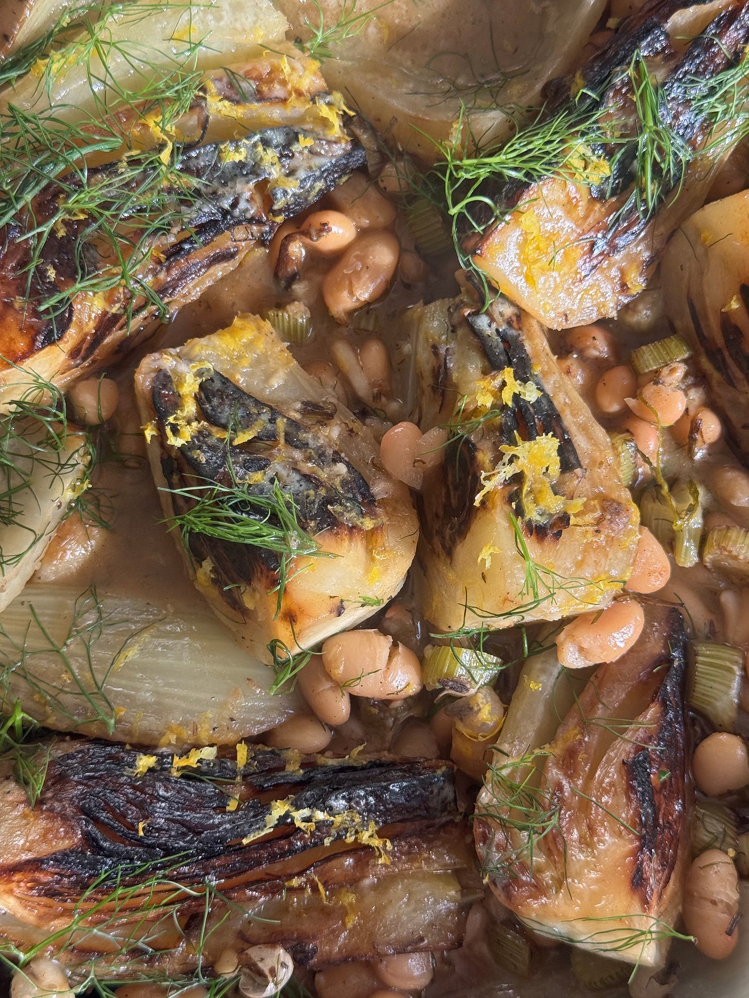 Stir in the cannellini beans and broth, seasoning with salt and pepper. Grate in about half of the Parmigiano Reggiano and stir to combine. Nestle the fennel wedges back into the pan, then finish with lemon zest and more Parm.